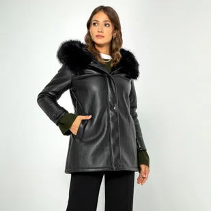 Skład: Materiał zewnętrzny: 100% skóra ekologiczna; podszewka: 100% poliester, sztuczne futro: 100% poliester. Odkryj nową definicję elegancji i wygody z naszą kurtką z ekoskóry – Twoim nowym ulubionym elementem garderoby!