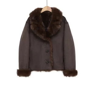Damska zimowa kurtka z futerkiem - Brązowy XS