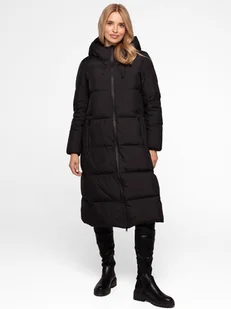 Ta czarna, długa, pikowana kurtka damska o prostym kroju z delikatnie rozszerzanym dołem została zaprojektowana z myślą o komforcie i wygodzie w chłodne jesienno-zimowe dni. To idealny wybór na co dzień czy do zimowych aktywności na świeżym powietrzu. Jest ocieplona mieszanką naturalnego puchu oraz pierza, dzięki czemu zapewni ciepło nawet w najzimniejsze dni. Prezentowane okrycie wierzchnie bardzo dobrze prezentuje się na sylwetce i będzie odpowiednie na każdy typ figury. Prezentowana czarna, pikowana kurtka damska jest zapinana na czarny, dwudzielny suwak, posiada nieodpinany, regulowany kaptur z ozdobnymi troczkami oraz dwie boczne, zapinane na suwak kieszenie.