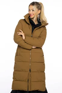 Długa puchowa kurtka damska z bocznymi rozporkami Brązowy 3XL
