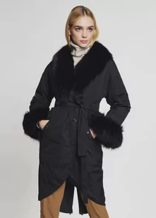 Ciepła kurtka damska o wydłużonej formie. Wykonana z tkaniny poliestrowej w czarnym kolorze. Ocieplana na stałe mieszanką puchu i pierza, która nadaje jej lekkości oraz zapewnia wysoką izolację cieplną. Odpinane wykończenie z naturalnego futra z jenota gwarantuje luksusowy wygląd, a po jego wypięciu model zyskuje lekki charakter. Powszechnie ceniona kurtka puchowa przedstawiona została w subtelniejszej, eleganckiej odsłonie – kształtem przypominająca płaszcz.