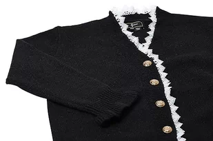 faina Damska kurtka z dzianiny z dekoltem w serek i koronkowym obszyciem akrylowym, czarna, rozmiar XS/S, czarny, XS