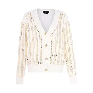 faina Damska kurtka z dzianiny z dekoltem w serek i łańcuszkiem z cekinami Wełna BIAŁA, rozmiar XL/XXL, biały (wollweiss), XL