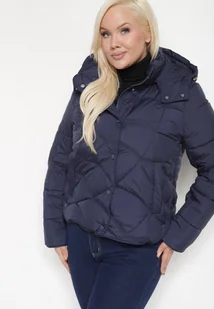 Granatowa Pikowana Kurtka z Kieszeniami i Kapturem z Możliwością Odpięcia Nikigala