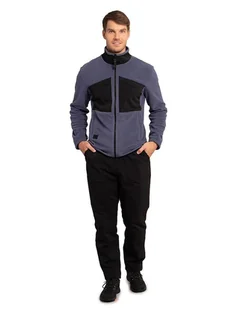 Kurtka polarowa "Aikim" w kolorze granatowym - kołnierz: stójka - zapięcie: suwak - kieszenie piersiowe: 2 - zasuwane kieszenie boczne: 2 - krój: prosty - wzór: colour blocking