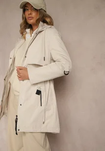 Jasnobeżowa Klasyczna Kurtka Parka z Kapturem i Ściągaczem w Talii Tulasira