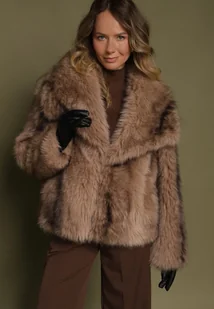 Jasnobrązowa Oversizowa Kurtka Futerko z Szerokim Kołnierzem Lenelle