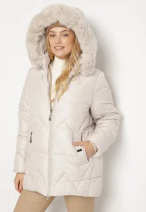 Jasnoszara Pikowana Kurtka z Kapturem z Futerkiem Tevea