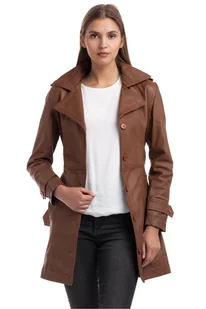 W talii znajduje się pasek, który subtelnie podkreśla sylwetkę. Bardzo miękka skóra doskonale dopasowuje się do kształtów ciała, zapewniając maksymalny komfort noszenia. Idealny wybór na chłodniejsze dni, dodający klasy każdej stylizacji. WYMIARY długość - 89,5 cm szerokość pod pachami - 57 cm długość rękawa - 65 cm