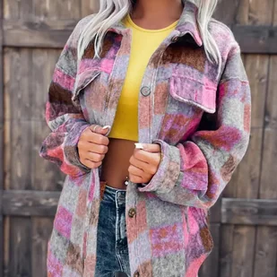 Kurtka damska koszulowa w kratę - Szary