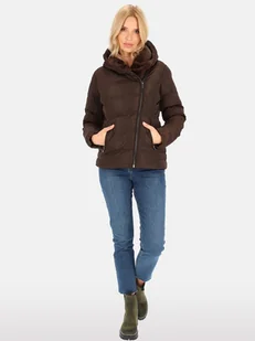 Kurtka damska pikowana z misiem w kapturze S Czekoladowy