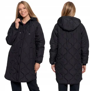 KURTKA DAMSKA PRZEJŚCIOWA PIKOWANY PŁASZCZ Z KAPTUREM NA JESIEŃ MORAJ S BLACK