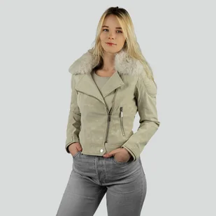 Kurtka damska ramoneska BOLSENA skóra ekologiczna z futerkiem kremowa M