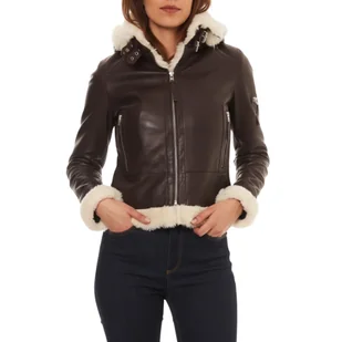 Główne atuty kurtki: Wysoka jakość wykonania: Kurtka wykonana z miękkiej, ale wytrzymałej skóry naturalnej w głębokim, ciemnobrązowym kolorze. Efektowne wykończenie: Kołnierz, dół kurtki oraz mankiety obszyte są gęstym, jasnym futerkiem, co nadaje jej charakteru typu "aviator" (pilotka).