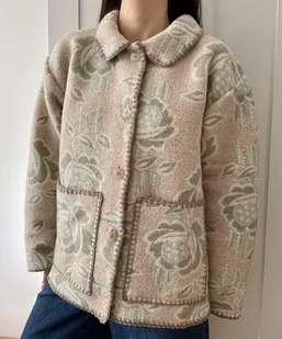 Pastelowa kurtka uszyta ręcznie z wełnianego koca z drugiego obiegu. Lekko oversizowa, zapinana na guziki, z dwiema kieszeniami z przodu. Idealna dla tych, którzy szukają niepowtarzalnego ubrania z dus ...