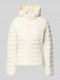 Kurtka puchowa damska Tommy Hilfiger;Efekt: jednolity kolor;Krój: Krój slim fit ;Kształt kołnierza: Odpinany kaptur, stójka;Zapięcie: Zamek błyskawiczny;Aplikacja: