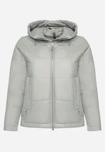 Miętowa Pikowana Kurtka o Pudełkowym Kroju z Szerokim Kołnierzem Evindas