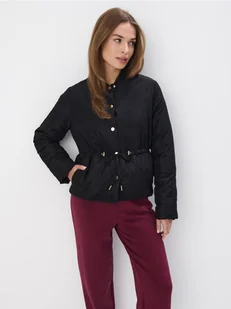 Krótka kurtka pikowana ze wzorem w monogram. Posiada zapięcie na zatrzaski i troczki w pasie.