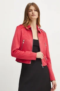 Taliowana kurtka damska ramoneska ze skóry ekologicznej - Czerwony