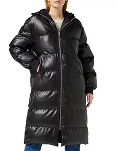 NA-KD Długa kurtka damska z kapturem, Czarny, 34