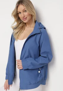 Niebieska Kurtka Parka o Pudełkowym Kroju ze Ściągaczem w Talii i Kapturem Sesoliena