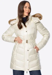 Materiał: Wykonana z nylonu, który skutecznie chroni przed wiatrem i sprawdza się w codziennym użytkowaniu. Ochrona termiczna: Naturalne wypełnienie z puchu kaczego i pierza zapewnia wyjątkowe ciepło nawet w mroźne dni, zachowując przy tym lekkość i komfort noszenia. Pasek w talii: Akcentuje kobiecą figurę i dodaje kurtce modnego charakteru.