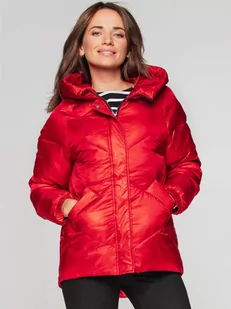 Ta puchowa damska kurtka w czerwonym kolorze od marki Perso to połączenie stylu, funkcjonalności i wyjątkowych detali. Pikowana struktura i serce umieszczone na plecach dodają modnego akcentu. Długość kurtki i wydłużenie z tyłu, tworzą harmonijną linię, jednocześnie dyskretnie maskując ewentualne niedoskonałości. Rękaw w stylu reglan zapewnia swobodę ruchów, a duży, otulający kaptur stanowi idealne zabezpieczenie przed wiatrem i chłodem. Zapina się na napy i suwak, z ozdobną śnieżynką.