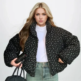 Puchowa zimowa kurtka damska - Czarny L