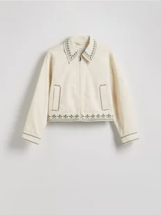 Reserved - Bawełniana kurtka z kołnierzykiem - złamana biel