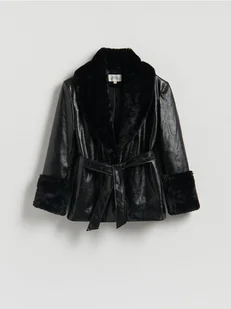 Reserved - Kurtka z futrzanym kołnierzem - czarny