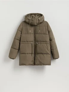 Reserved - Pikowana kurtka z odpinanym kapturem - oliwkowy