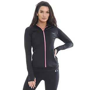 RIPT Performance damska treningowa top zapinana na zamek błyskawiczny szybkoschnący otwór na kciuk kurtka na siłownię z długim rękawem, czarny/różowy, średni