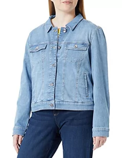 Samoon Damska kurtka dżinsowa z długim rękawem, zapinana na guziki kurtka dżinsowa + tkanina kurtka dżinsowa jednokolorowa, efekt spranego, Blue Denim, 52