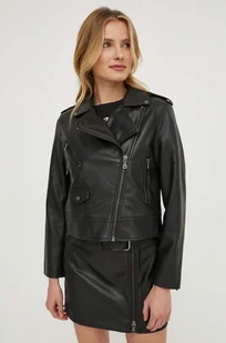 Taliowana kurtka damska ramoneska ze skóry ekologicznej - Czarny