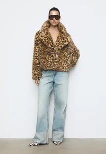 Stradivarius Dwurzędowa kurtka w panterkę ze sztucznego futra Beżowy XS