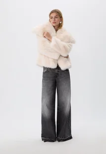 Krótka kurtka wykonana z tkaniny ze sztucznego futra. Kołnierz z klapami i długi rękaw. Boczne kieszenie. Dwurzędowe zapięcie z przodu na ukryte napy. Dostępna w kilku kolorach.