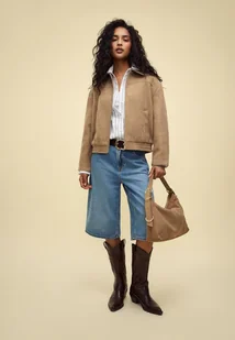Stradivarius Kurtka bomberka miękka w dotyku Jasny wielbłądzi S