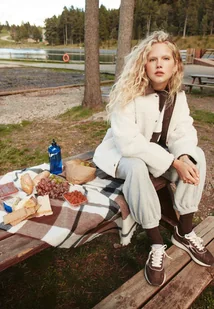 Pikowana kurtka dwustronna z efektem sztucznego baranka. Kołnierz z klapami i długi rękaw. Boczne kieszenie po obu stronach. Zapięcie z przodu na zatrzaski.