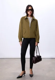 Kurtka bomberka ze stójką z guzikami i długim rękawem zakończonym ściągaczem. Kieszenie boczne z patkami. Dół wykończony elastycznym ściągaczem. Zapięcie z przodu na metalowy zamek błyskawiczny dwukierunkowy.
