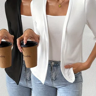 TEMU 2 szt. Damski Kardigan Casual Jednokolorowy Prosty Żakiet