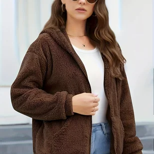 TEMU Casualowa kurtka z kieszeniami, na suwak przedni, miękka, idealna na jesień/zimę