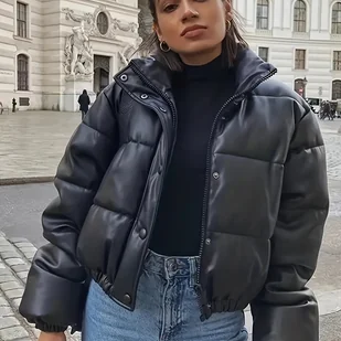 TEMU Krótka Zimowa Kurtka Puchowa z Stojącym Kołnierzem i Pełnym Zamkiem – Ciepła Kurtka Motocyklowa Idealna na Casual, Pranie w Praniu Maszynowym,