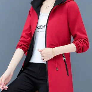 TEMU Damski Casualowy Płaszcz Trencz z Długim Rękawem – Dwustronny Design z Regulowanym Pasem, Dopasowany, Czerwono-Czarny Blok Kolorów na Wiosnę i