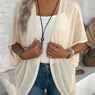 TEMU Damski Jednokolorowy Blazer - Półprzezroczysty z Otwartym Kołnierzem, Możliwość Prania w Pralce, Wiosenna/Jesienna Casualowa Odzież Wierzchnia,