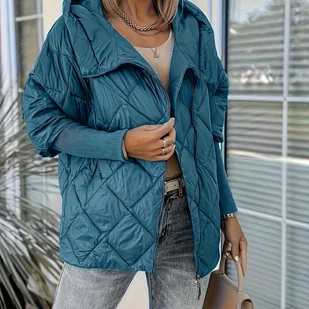 TEMU Damski Turkusowy Zimny Płaszcz z Rękawami Nietoperz i Pełnym Suwakiem - Elegancka Kurtka na Chłodne Dni, Pranie w pralce Odzież Wierzchnia