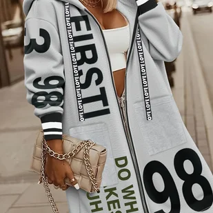 TEMU Damski Zimowy Kapturowy Kurtka z Napisem 'LOVE' & -1 Zapinany Płaszcz, Paski na Mankietach i Kieszeniach, Casualowa Ciepła Odzież Wierzchnia na