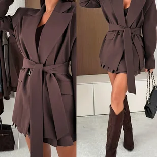 TEMU Elegancka Marynarka - Kołnierz z Wycięciem, Pasek w Talii, Luźny Krój, Casualowa Kurtka, Jednokolorowa, Pranie w Praniu Maszynowym,