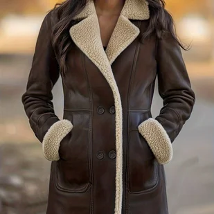 TEMU Damski Płaszcz z Kieszeniami na Klapach, Podwójny Zapięcie, Ciepły Płaszcz z Ekoskóry