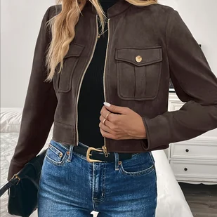TEMU Europejsko-Amerykańska Krótka Kurtka z Długim Rękawem: Lekka, Stylowa i Uniwersalna Płaszcz na Jesień/Zimę