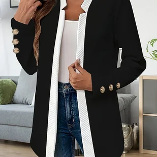 TEMU Elegancka Marynarka z Kołnierzem dla Kobiet - Dopasowany Płaszcz na Wszystkie Pory Roku, Jednokolorowy (Czarny/Granatowy/Węgielny) Możliwość